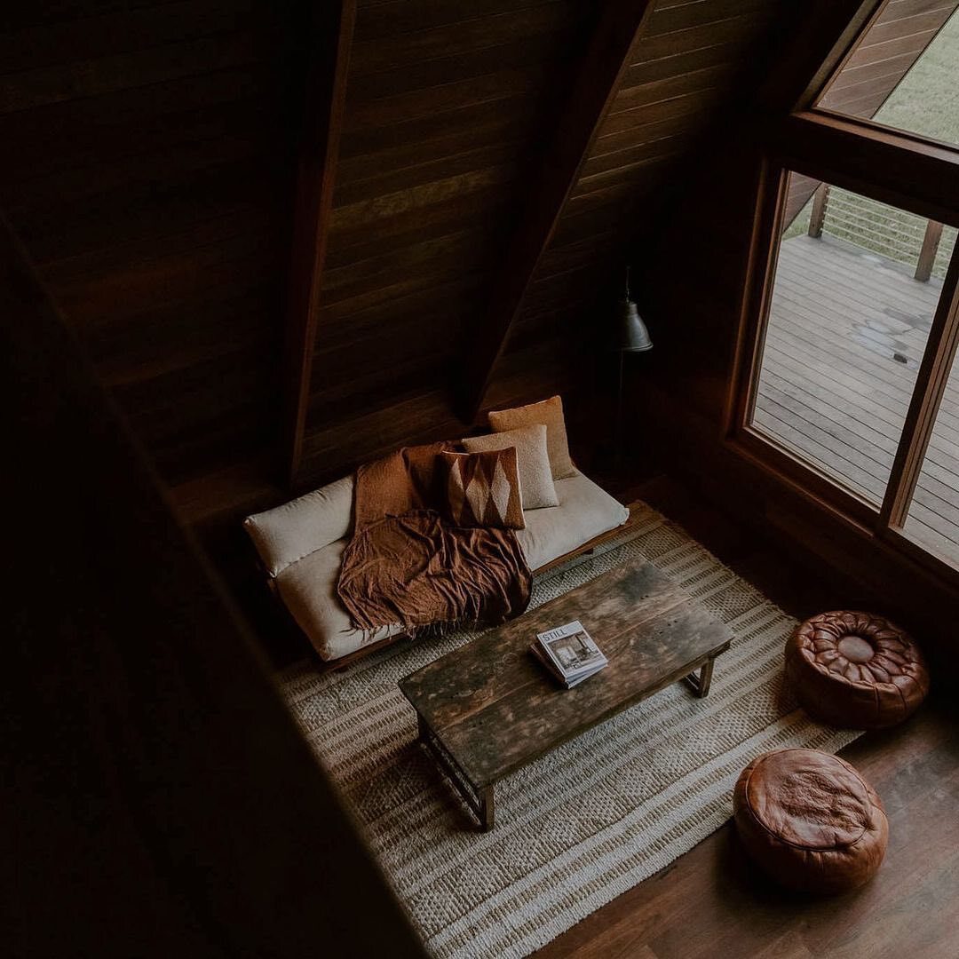 Apesar do visual compacto típico das cabanas A-Frame, o interior foi cuidadosamente planejado para oferecer conforto e funcionalidade.