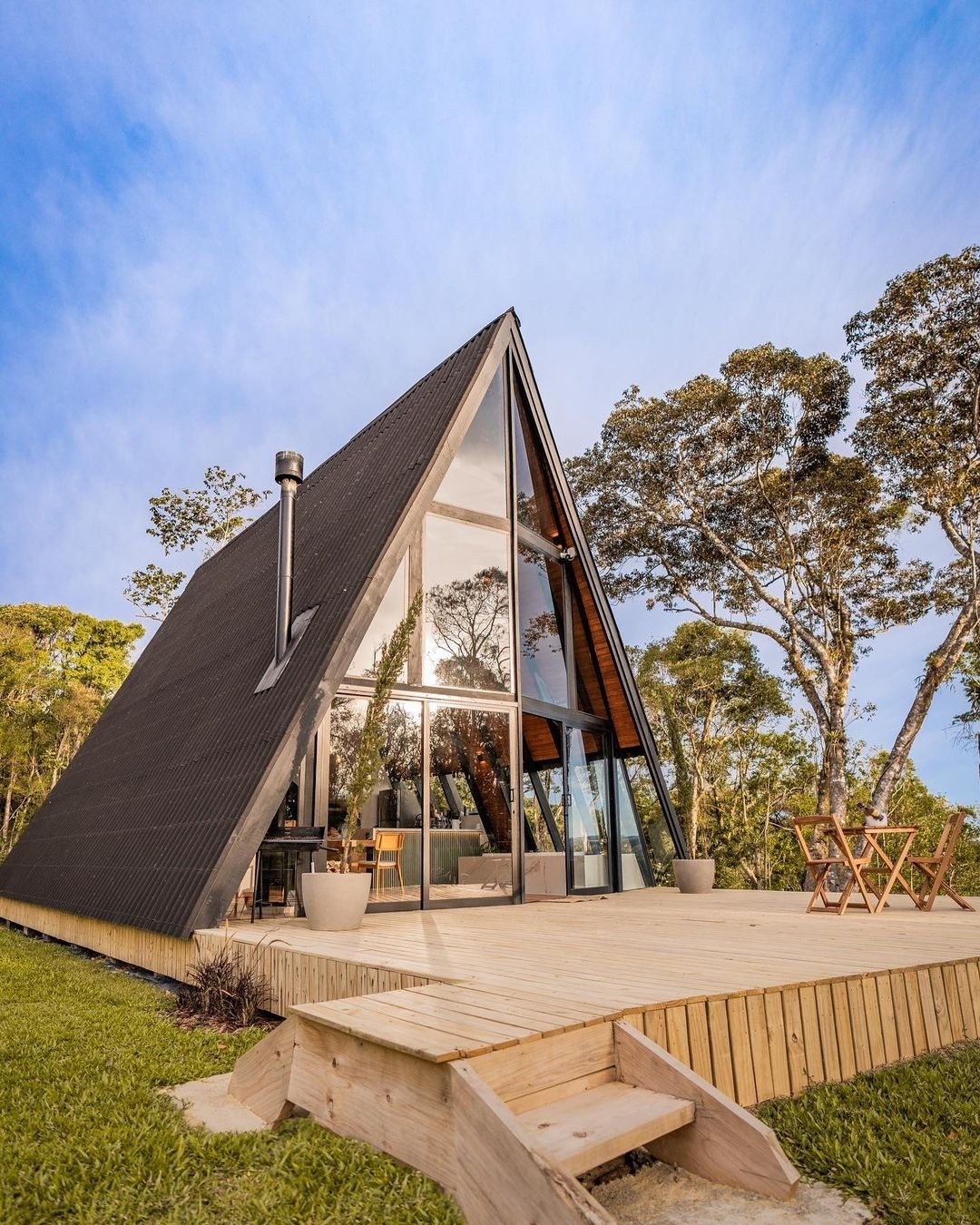 O grande destaque das Cabanas da Serra está na arquitetura que une rusticidade e conforto moderno. As construções valorizam o uso de madeira, criando uma estética acolhedora e harmoniosa com o entorno natural.