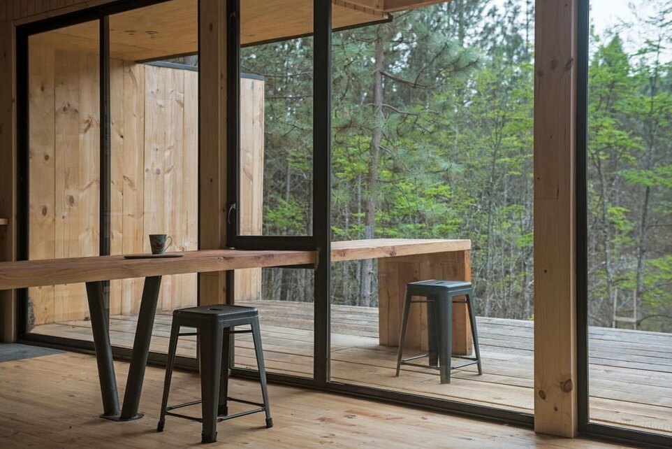 A área de estar se torna um espaço ideal para relaxar após um dia explorando a natureza. Sofás confortáveis, iluminação suave e vistas para o exterior criam um ambiente perfeito para momentos de contemplação.