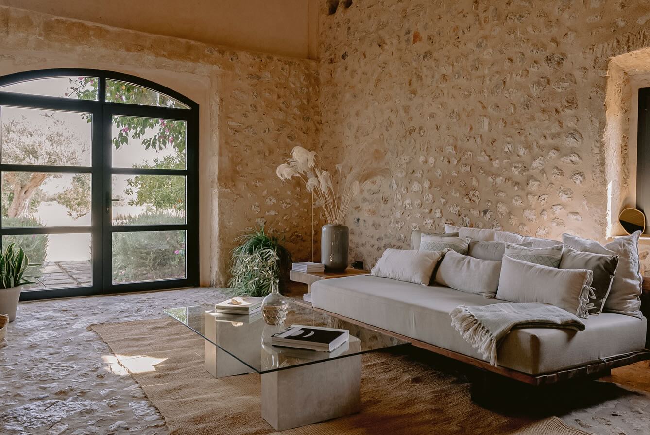 Um dos grandes destaques da Casa Maná Mallorca é sua arquitetura. Inspirada nas construções tradicionais da ilha, a propriedade apresenta volumes bem definidos, tons claros e integração harmoniosa com o entorno natural.