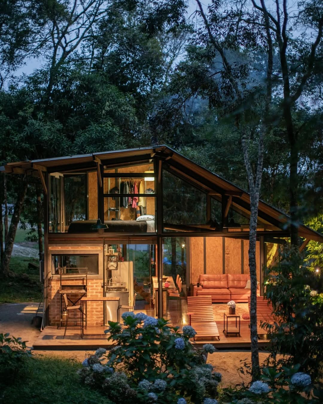 Enquanto alguns chalés são ideais para casais e experiências românticas, outros acomodam famílias ou grupos, mantendo sempre o padrão de conforto e a conexão com a natureza.