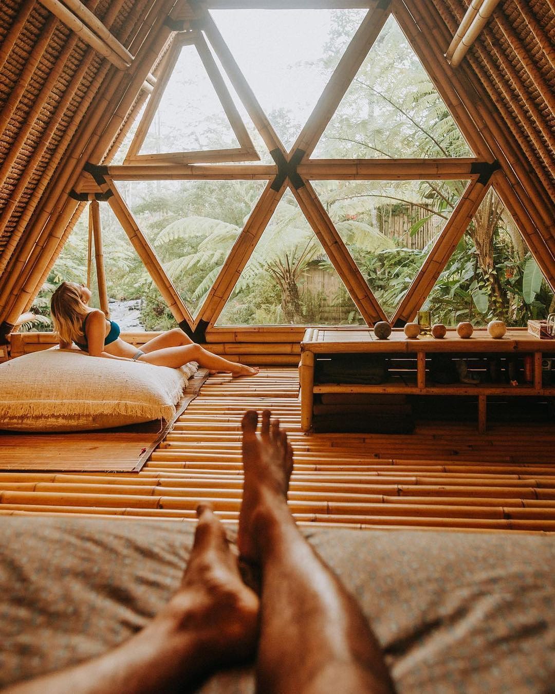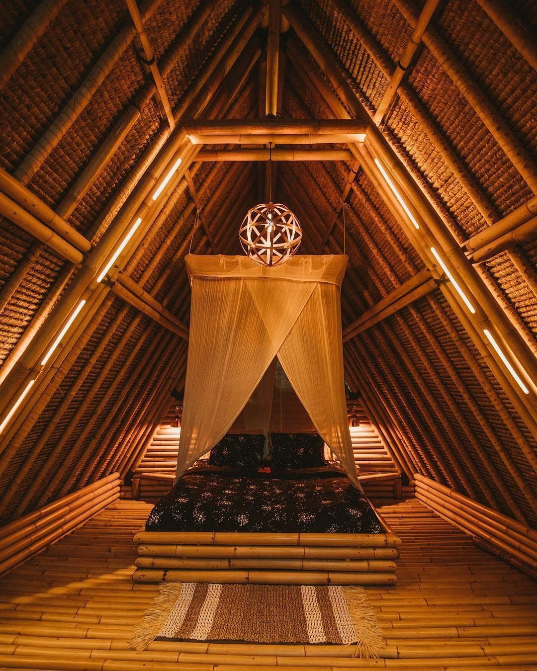 Um dos grandes destaques do Hideout Bali é sua arquitetura única, construída quase totalmente em bambu. Esse material, muito utilizado na construção tradicional balinesa, oferece resistência estrutural, sustentabilidade e uma estética natural impressionante.