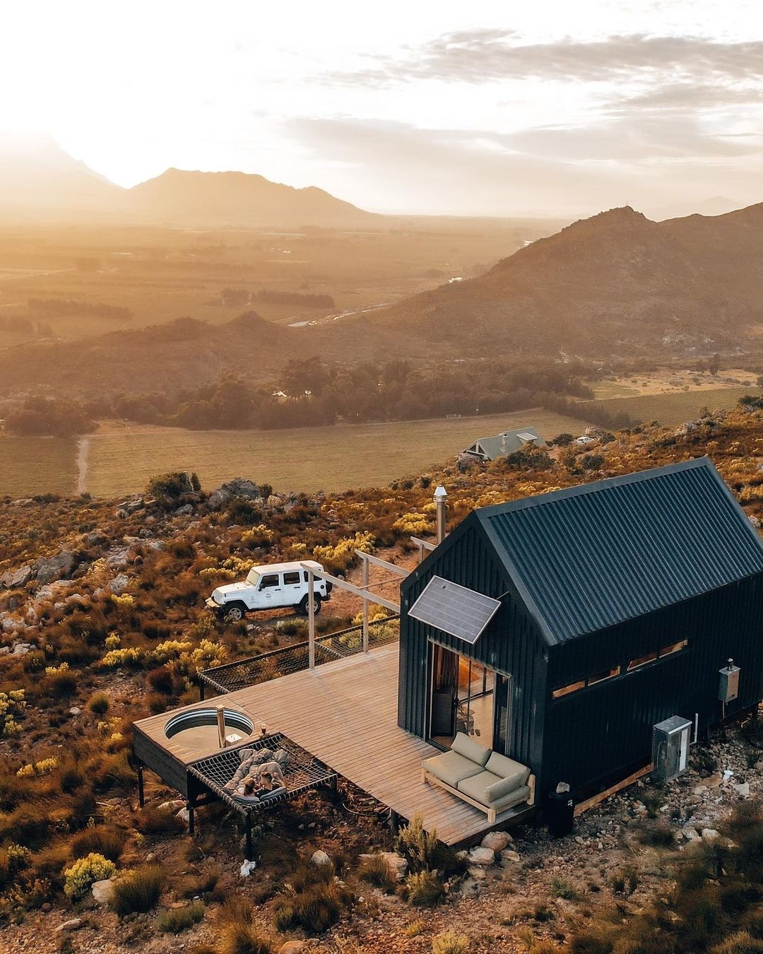 O projeto arquitetônico da Mount Bain Cabin valoriza linhas simples, volumetria elegante e materiais naturais. A estrutura foi pensada para se integrar ao terreno, respeitando o relevo e enquadrando as montanhas como parte essencial da experiência.